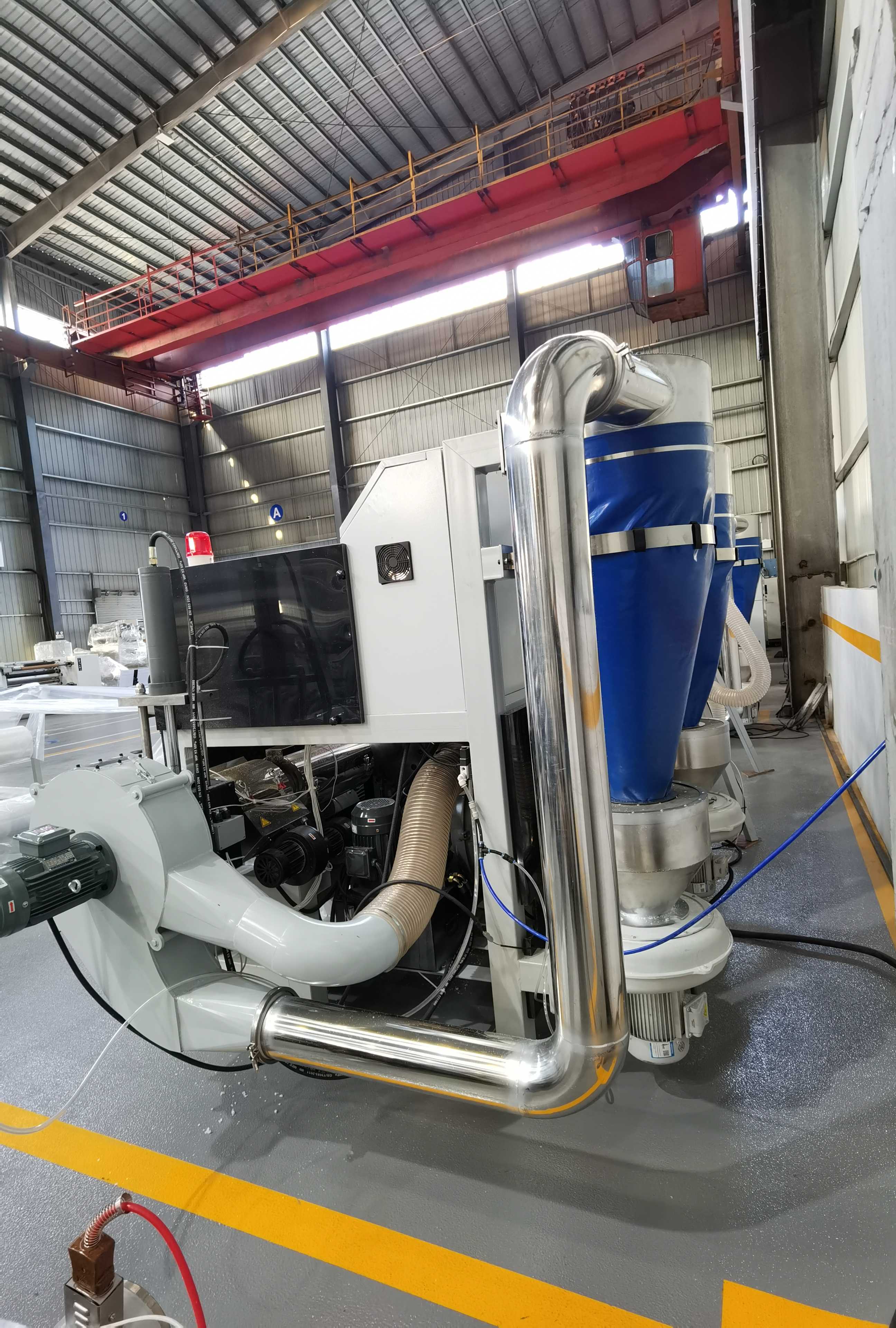 Edge material recovery granulatorSuitable for BOPP, PET, CPP, CPE, PVC, aluminum foil and other coil recycling granulation.