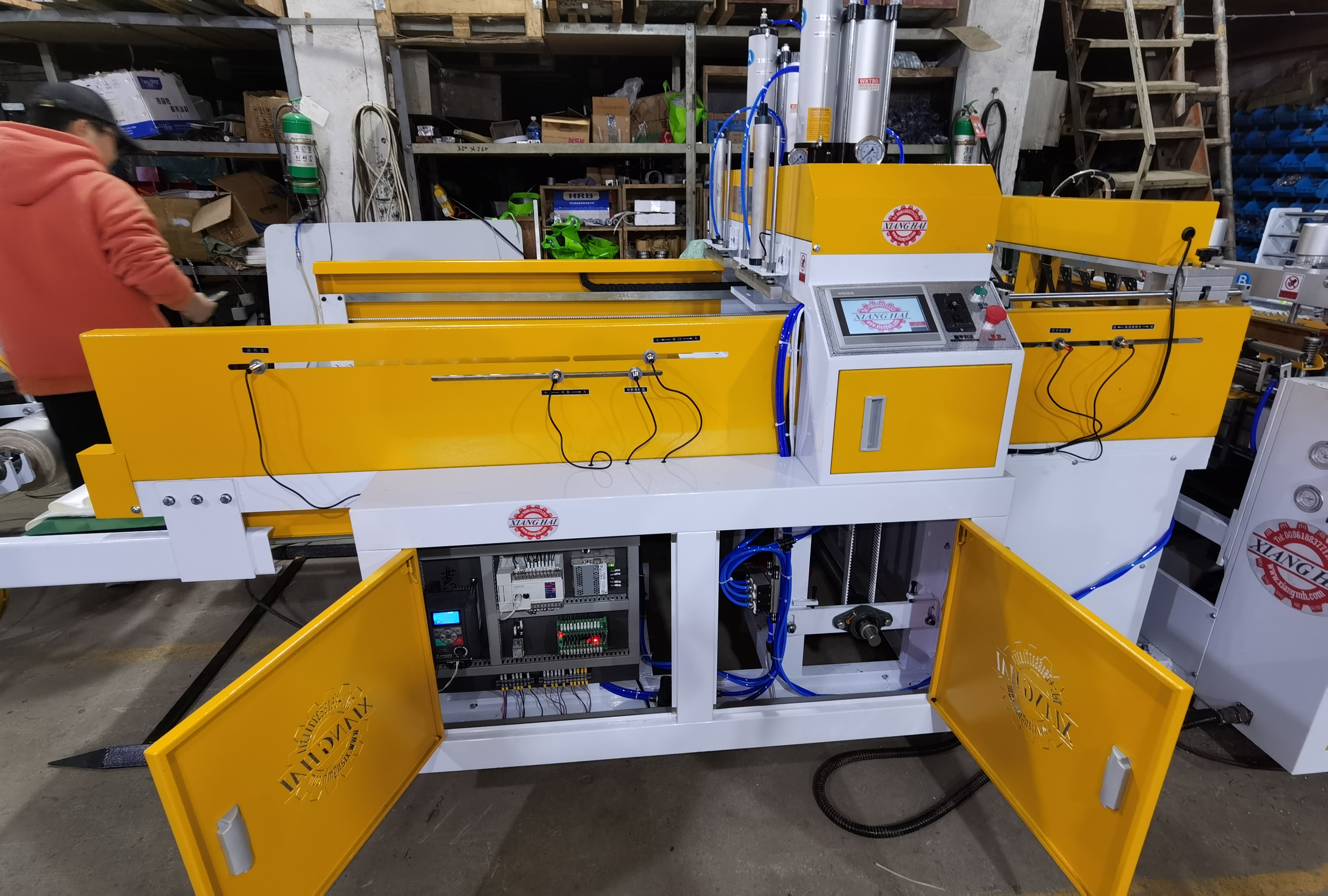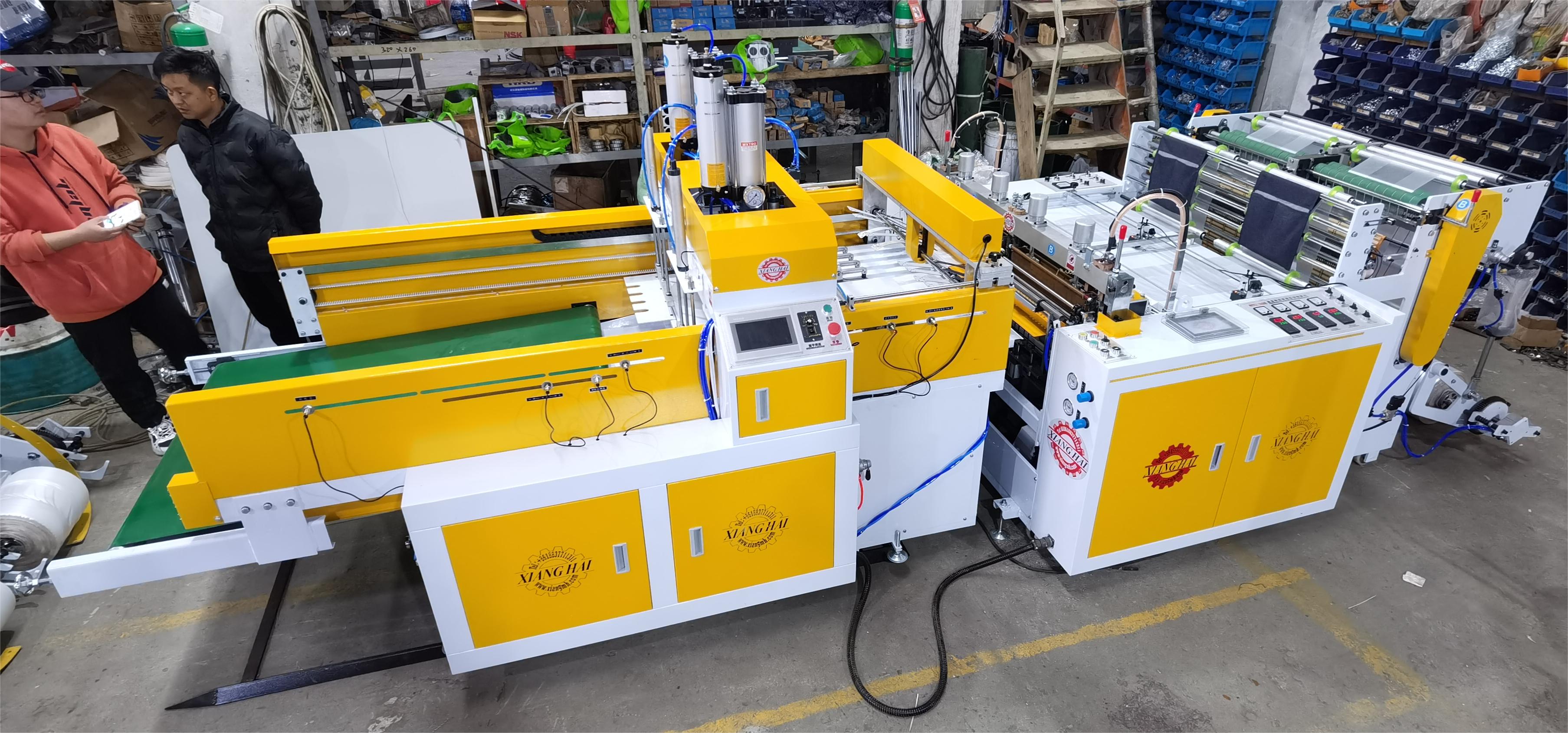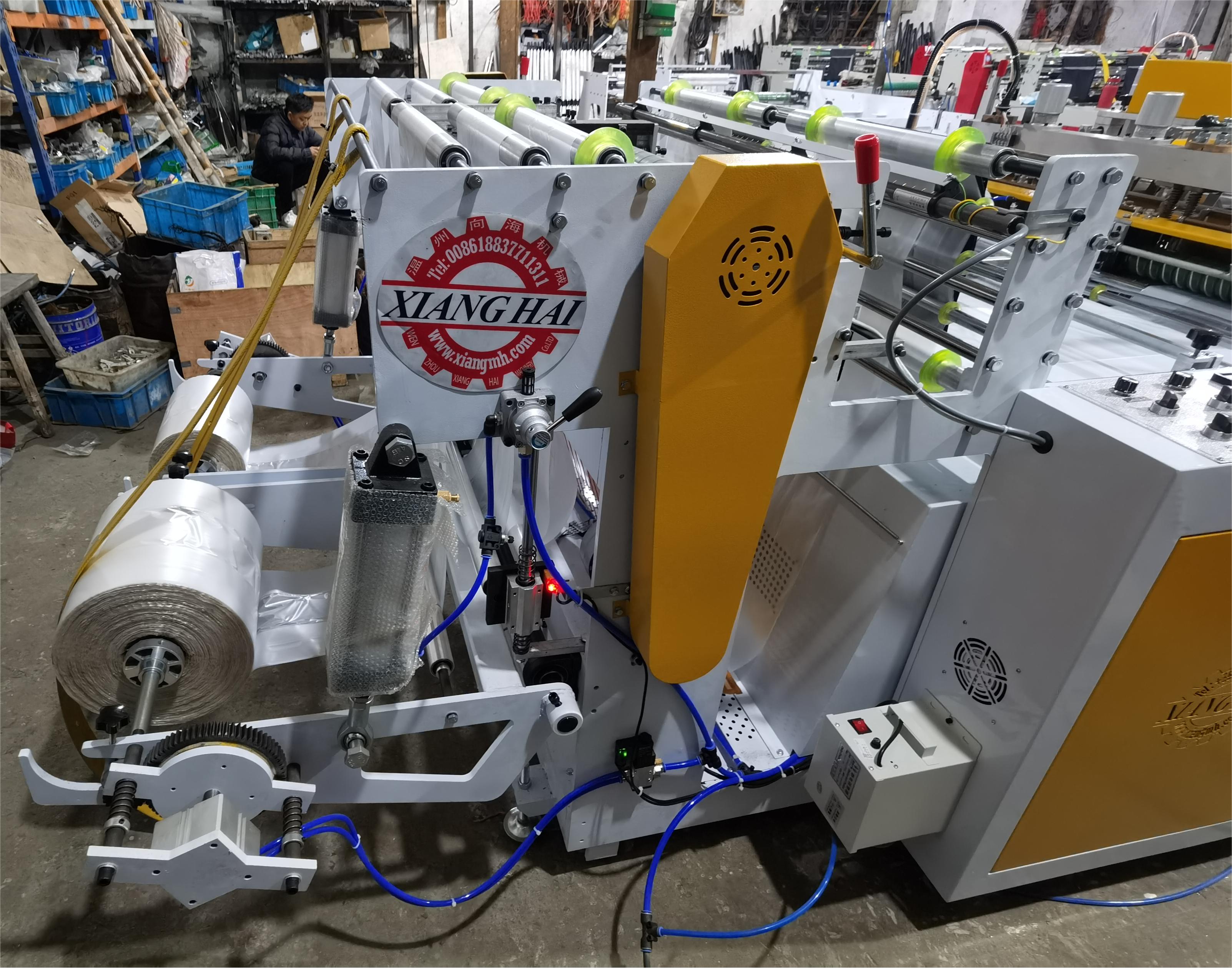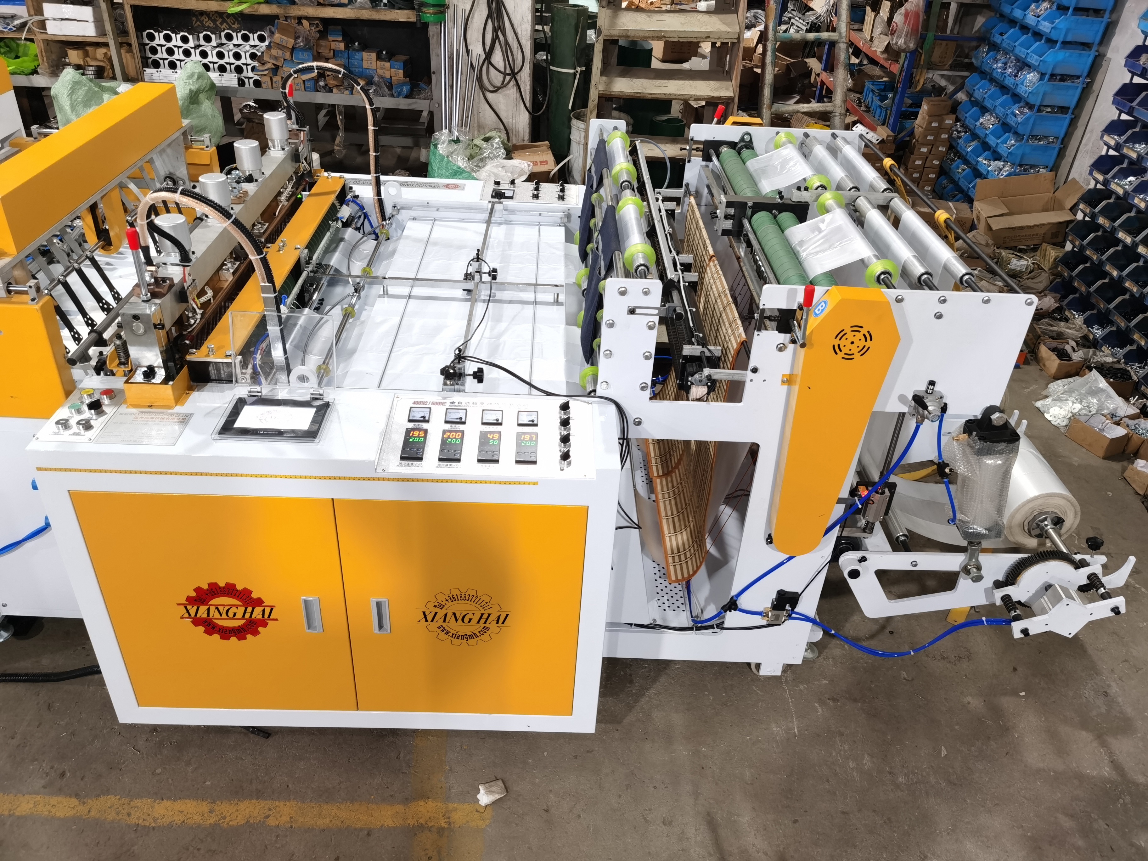 automaticlly,also the machine is with photocell, automatic material feeding device,automatic constant temperature control device, electrostatic removing device,automatic counting and alarm device etc.It's easy operation, stable performance and with high producing speed. This machine is the best machine to make T-shirt bag if you want to save labor.