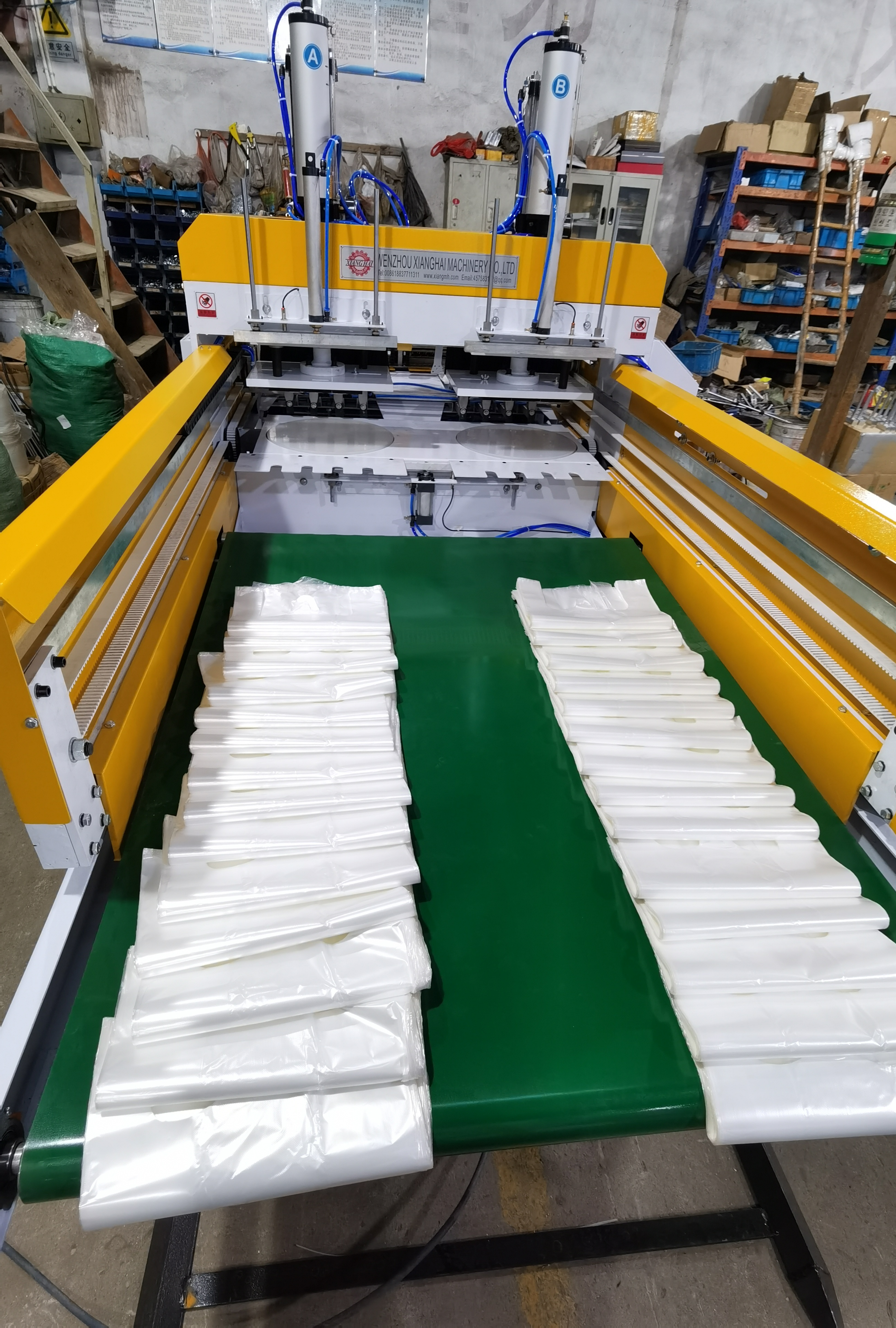 1.This machine is special for making unprinted or printed T-shirt bag.The machine finish the feeding, sealing, cutting,punching and transporting only in one process.