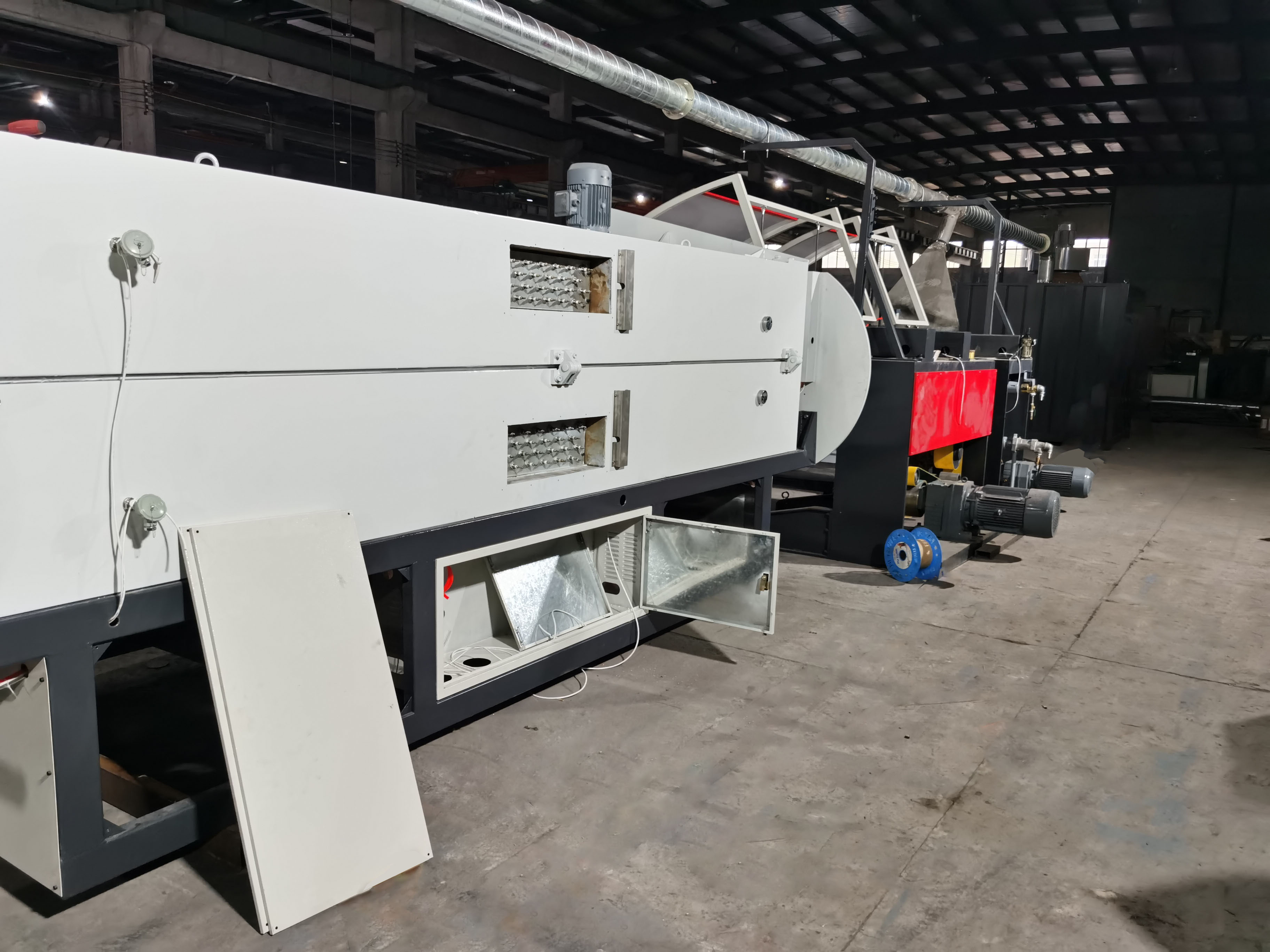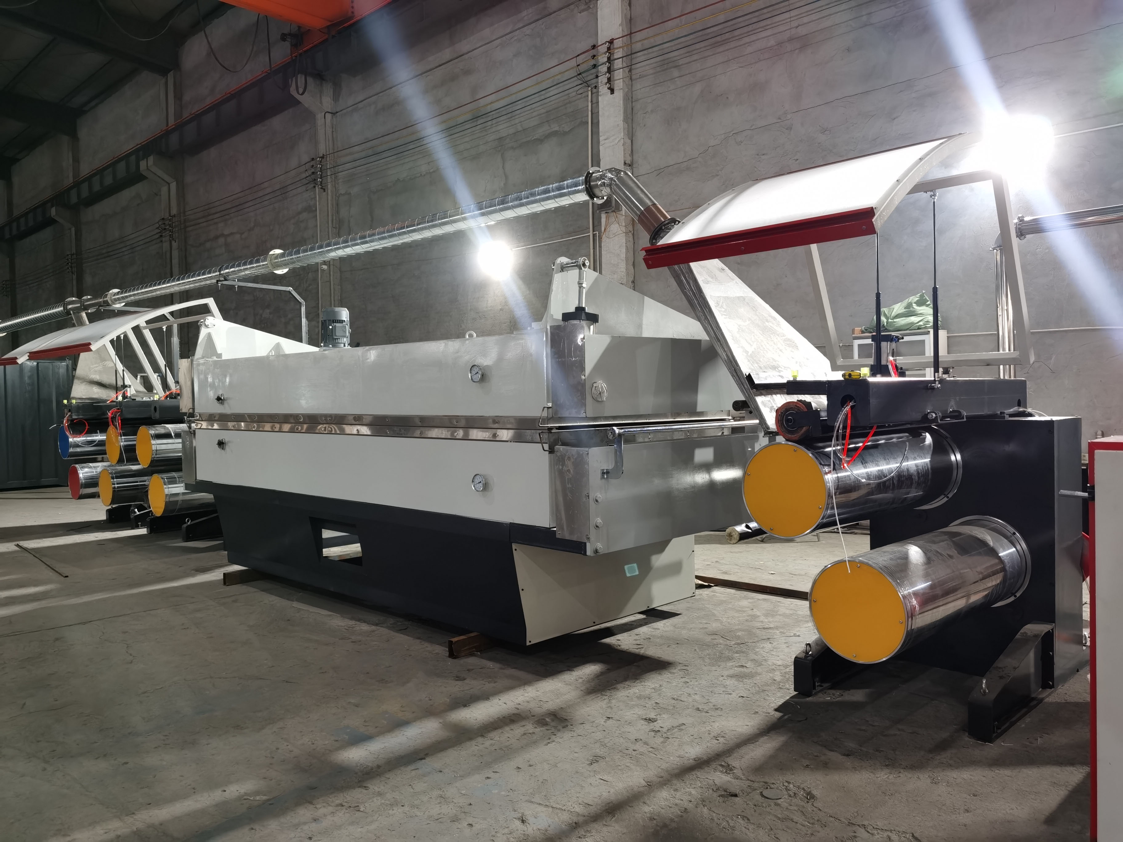 The tape stretching line is consists of an extruder, a screen changer, a die, a water quench system, a film take-off and slitting film into tapes device, a traction system, a hot air oven, a stretching and annealing unit, a winding unit, edge tape and waste tapes reclaim system as well as electric control cabinet, etc.